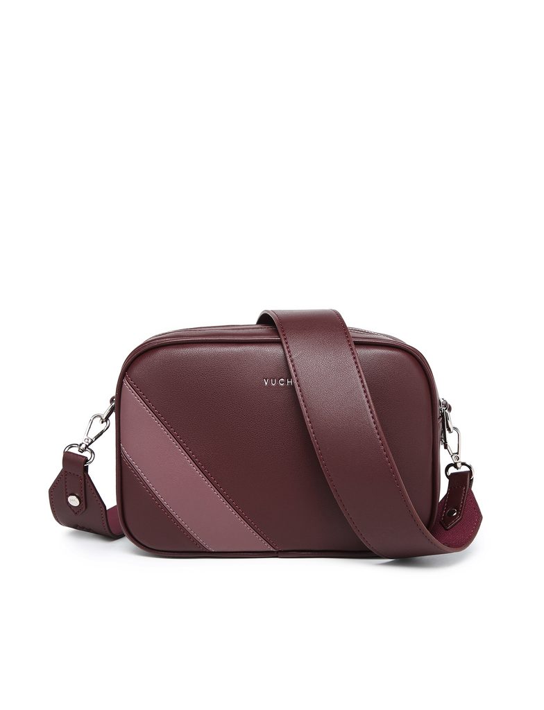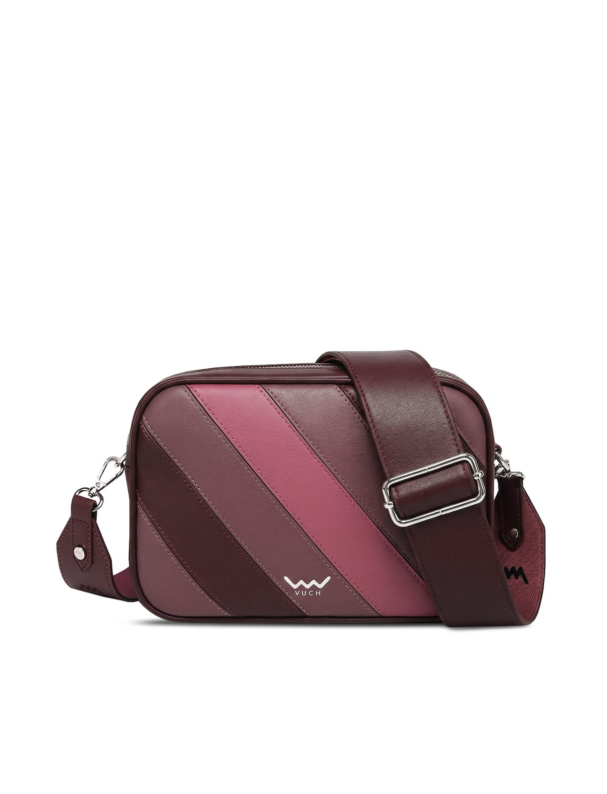 Massimo Striped Dark Wine črtasta crossbody torbica na zadrgo
