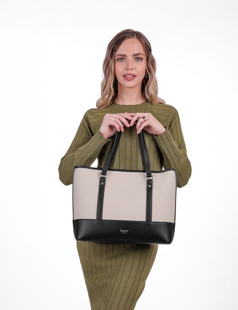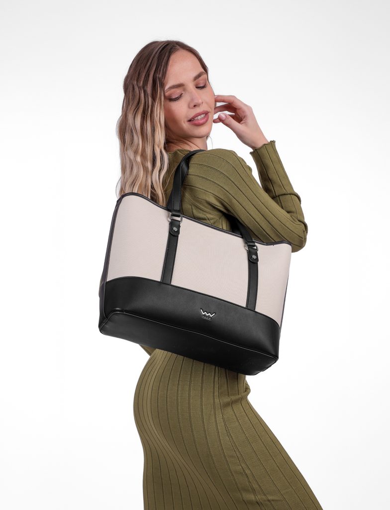 Več informacijNa prvi pogled preprosta. In prav v tem je njena čarovnija. Velika torbica čiste oblike z dovolj prostora za vse, kar greš s tabo v službo, na sestanek ali samo v mesto. V njej skriješ prenosnik, dnevnik, steklenico za vodo in majhen prigrizek. Zahvaljujoč snemljivemu notranjemu organizatorju ima vsaka malenkost svoje mesto – in ko ravno potrebuješ več prostora, ga preprosto vzameš ven.