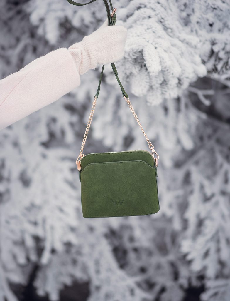 Fossy Mini Suede Green semiš crossbody torbica z verižico