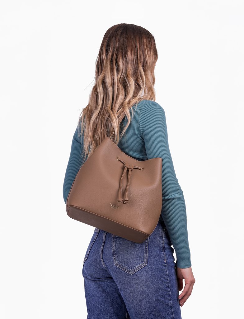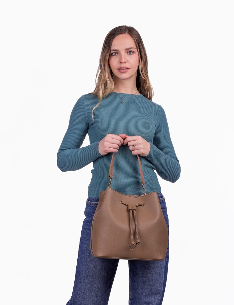 Taya Brown ročna torbica z crossbody pasom
