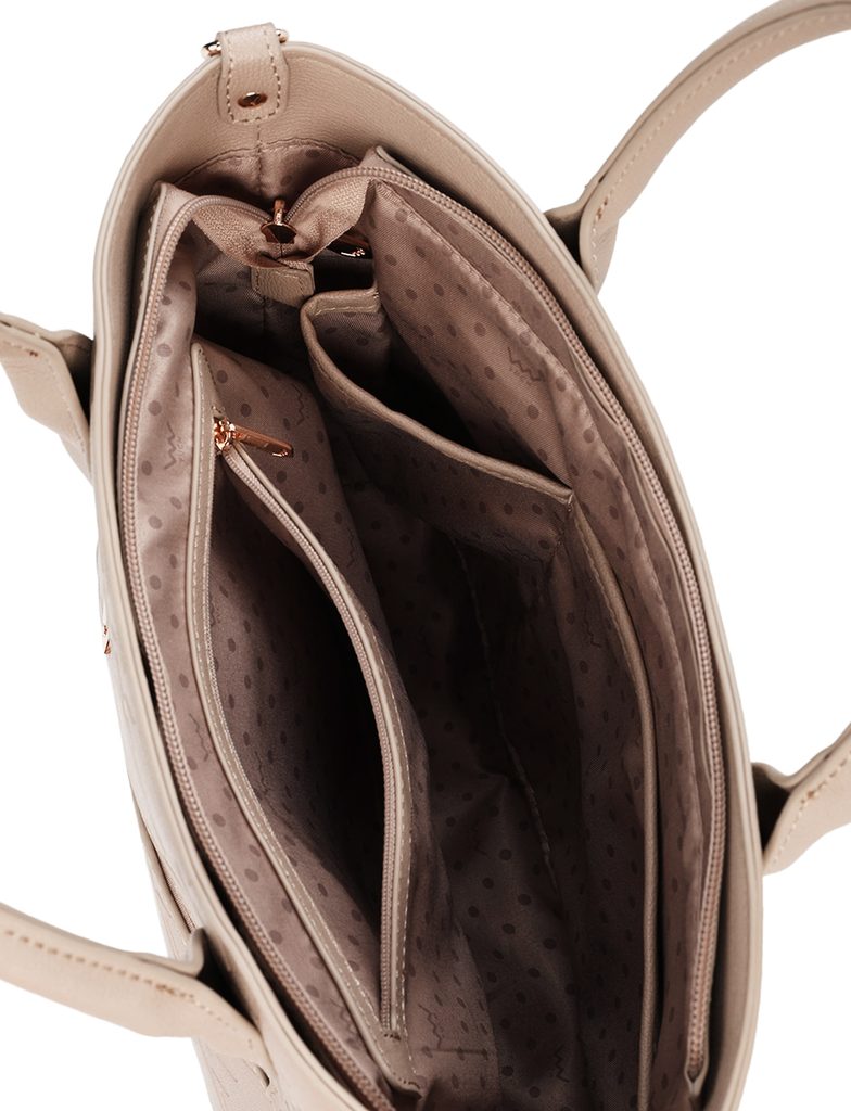 Več informacijChristel spada med torbice, ki se radi spremenijo čez dan. In tokrat v izrazitem monogram vzorcu. Dopoldne jo boš elegantno nosila v roki, kasneje pripneš naramnico in jo nosiš čez ramo. Znotraj je velik glavni prostor na zadrgo, praktični žepki za drobnarije in prostor točno za tiste stvari, ki jih ne želiš iskati po dnu torbice. Preprosto torbica, ki obvlada stil in vsakodnevno uporabo.