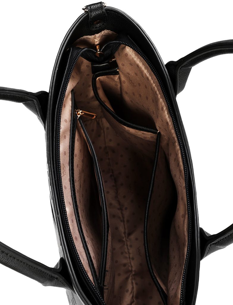 Več informacijChristel spada med torbice, ki se radi spremenijo čez dan. In tokrat v izrazitem monogram vzorcu. Dopoldne jo boš elegantno nosila v roki, kasneje pripneš naramnico in jo nosiš čez ramo. Znotraj je velik glavni prostor na zadrgo, praktični žepki za drobnarije in prostor točno za tiste stvari, ki jih ne želiš iskati po dnu torbice. Preprosto torbica, ki obvlada stil in vsakodnevno uporabo.