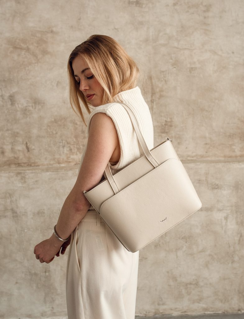 Neela Grace Beige velika torbica iz italijanske goveje kože